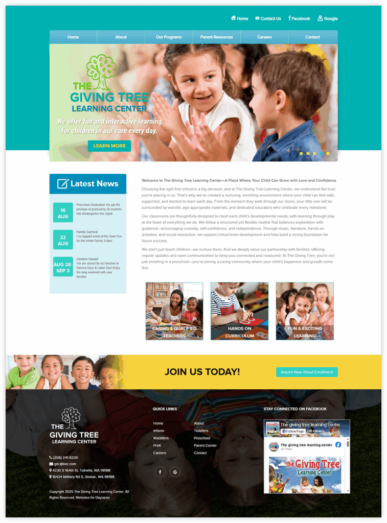 Today we are featuring a client website using our Bright Futures child care website theme.