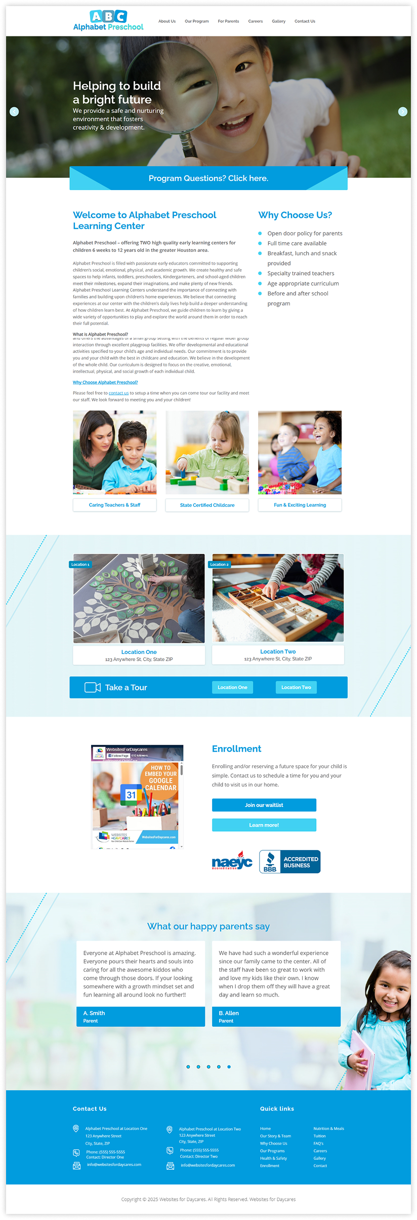 Open Enrollment Child Care Website Template – VIEW DEMO